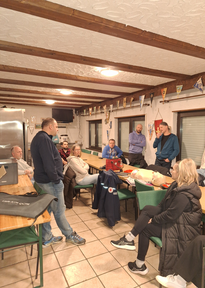 Die fachgerechte Einweisung und Schulung im Umgang mit dem Gerät erfolgte am 21.01.2026 durch Herrn Hofmann vom DRK St. Leon-Rot. Erfreulicherweise nahmen 14 Mitglieder der Jugendabteilung an der Schulung teil. Dadurch wird sichergestellt, dass Trainer, Betreuer und Verantwortliche im Ernstfall schnell und sicher handeln können.